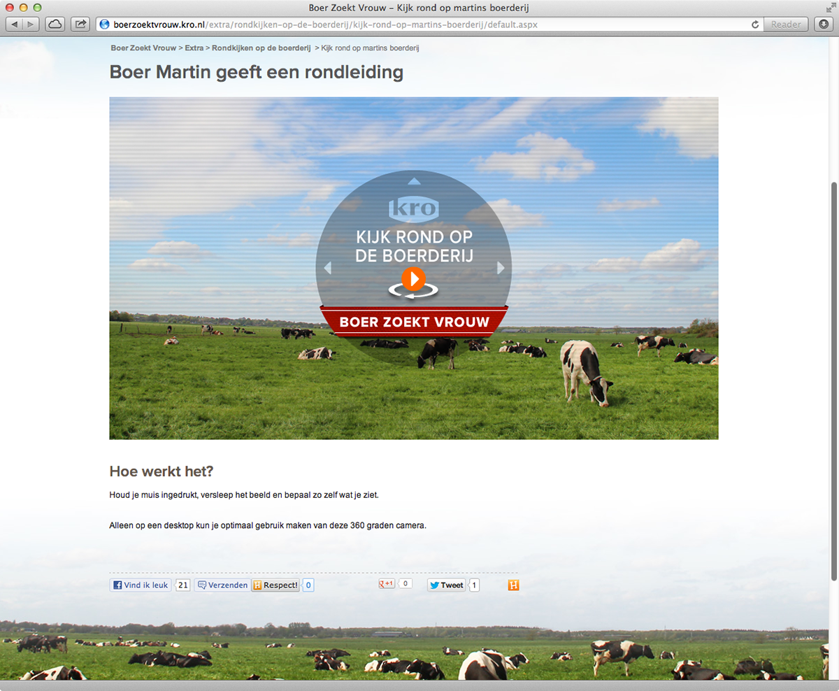 KRO's Boer Zoekt Vrouw (Farmer Wants a Wife) is one of the most successful shows on Dutch television. What can you add to that? A lot. The new Farmer Wants a Wife website is fully optimized for tablets. It also acts as a full-fledged second screen. The site contains all information about the program and the farmers, plus exclusive web content such as the Broer Zoekt Vrouw (Brother Wants a Wife) series, 360-degree videos, and additional material.