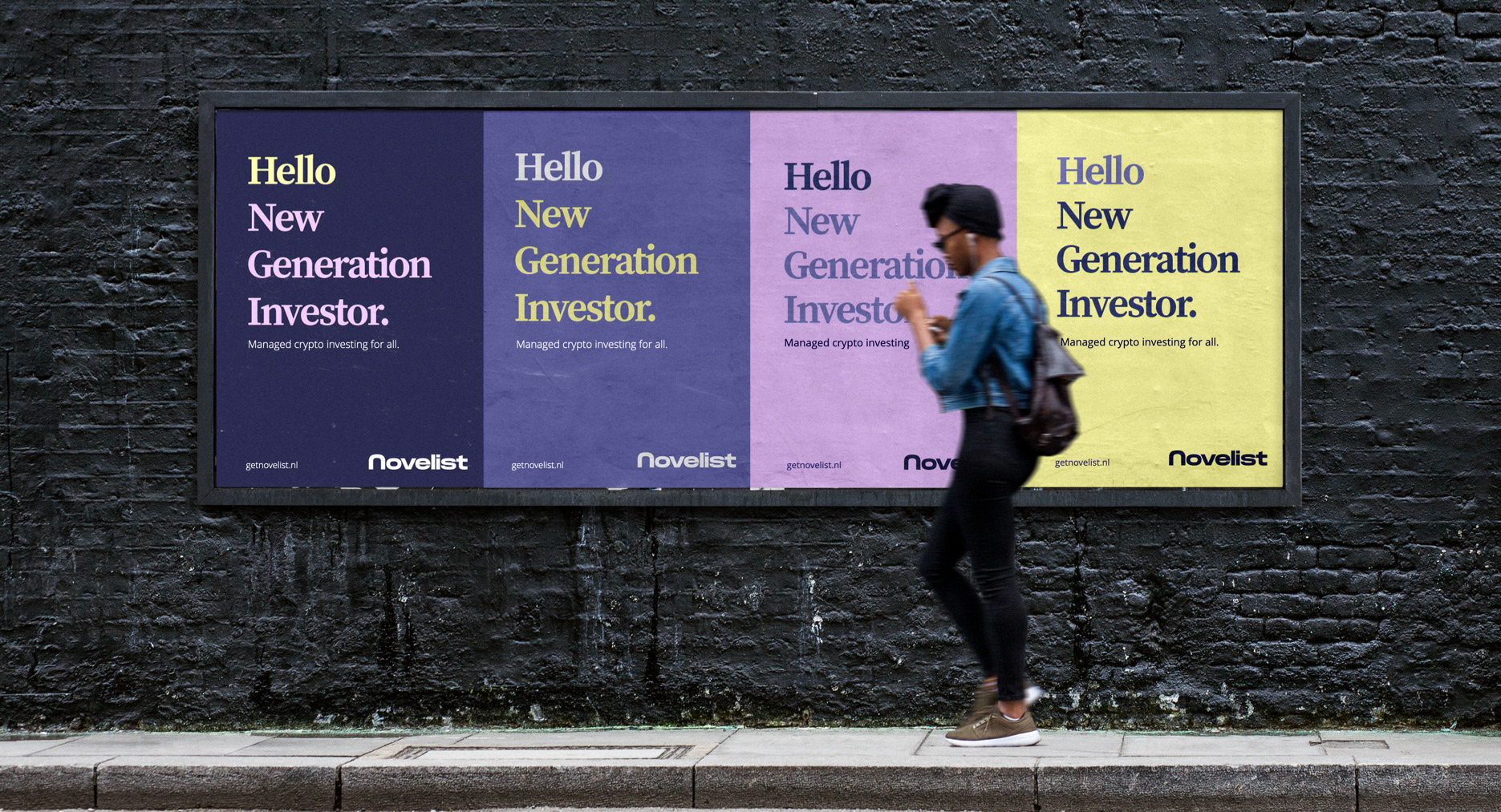 Achieving financial independence through savings or buying a house is out of reach for a growing number of people. Crypto enables them to build capital by directly investing in the heart of the digital economy. But investing in crypto is notoriously hard. Novelist solves that problem with managed investing by a team of dedicated experts. And that is exactly what the campaign promises, the brand enables and the products deliver.